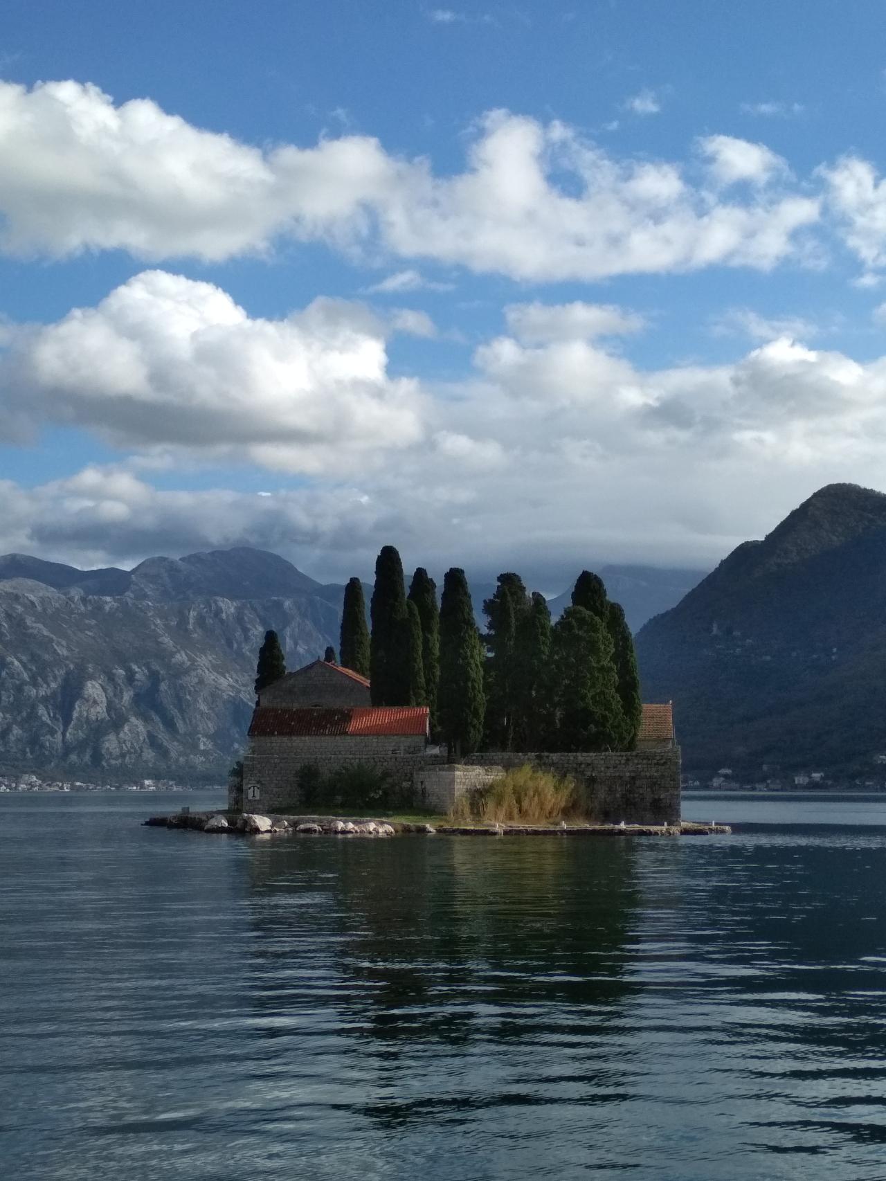 Теперь внимание. Мы приближаемся к самому интересному, плавно скользя по изумрудной глади Которского залива. Выходя узким проливом в наиболее удалённую от устья часть бухты, взглядом упираешься в цепочку гор прямо по курсу, прибрежный городок Пераст, расположенный у их подножия, и пару маленьких островов чуть левее.